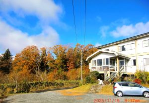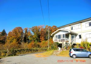 蒜山ICより3kmです。バス停から歩いて3分200mです。ここは、海抜550mの高原です。