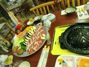 夕食 ジンギスカンナベ 家族で、乾杯です。 ひるぜん焼きそばセット 夕食です。