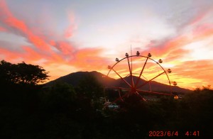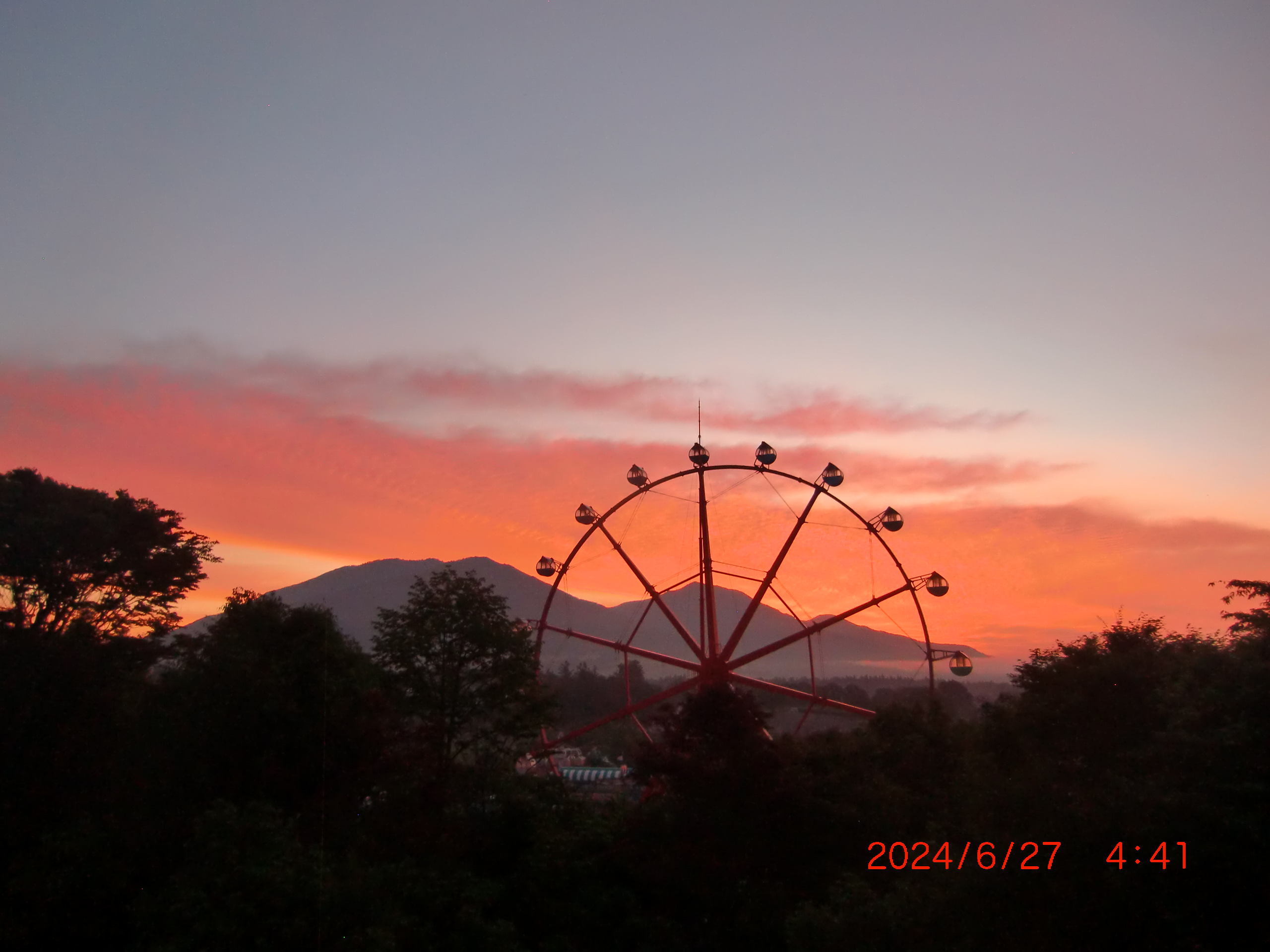 ひるぜん高原の朝焼け。みきのや窓から一望です。