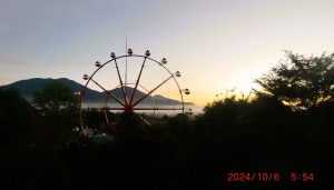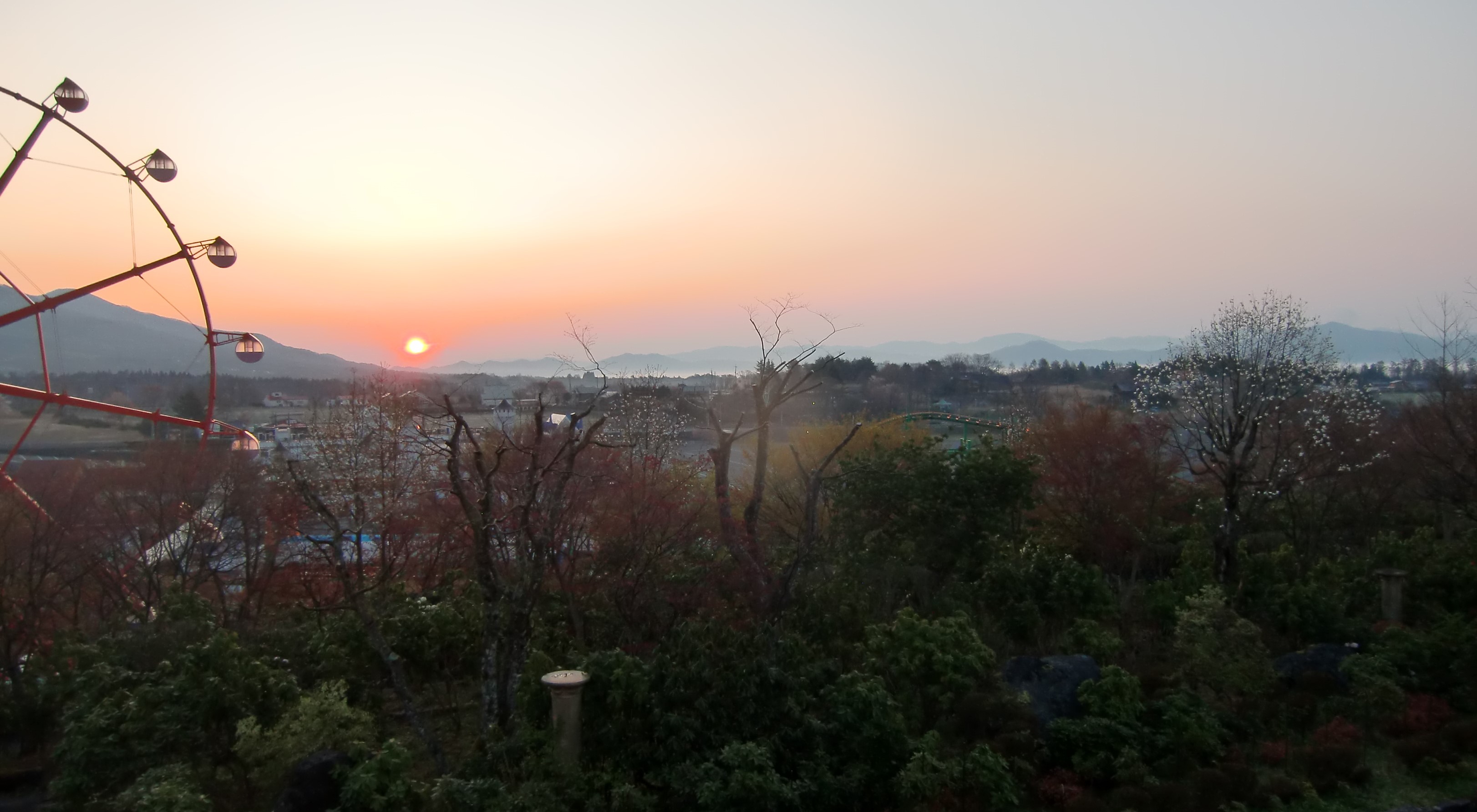 歩いて5分、蒜山三座、牧場の牛の群れを見て遊園地へ。