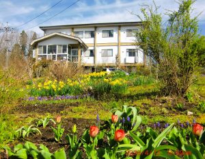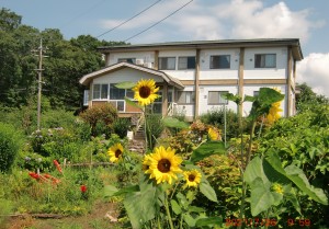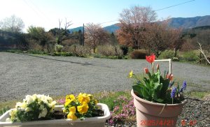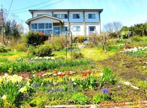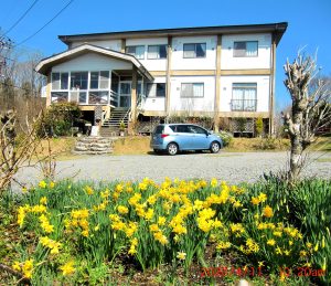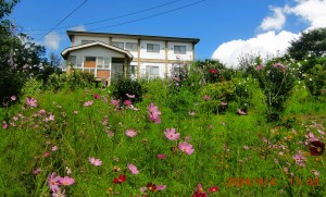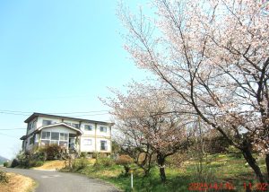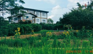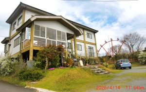 蒜山ICより3kmです。バス停から歩いて3分200mです。ここは、海抜550mの高原です。